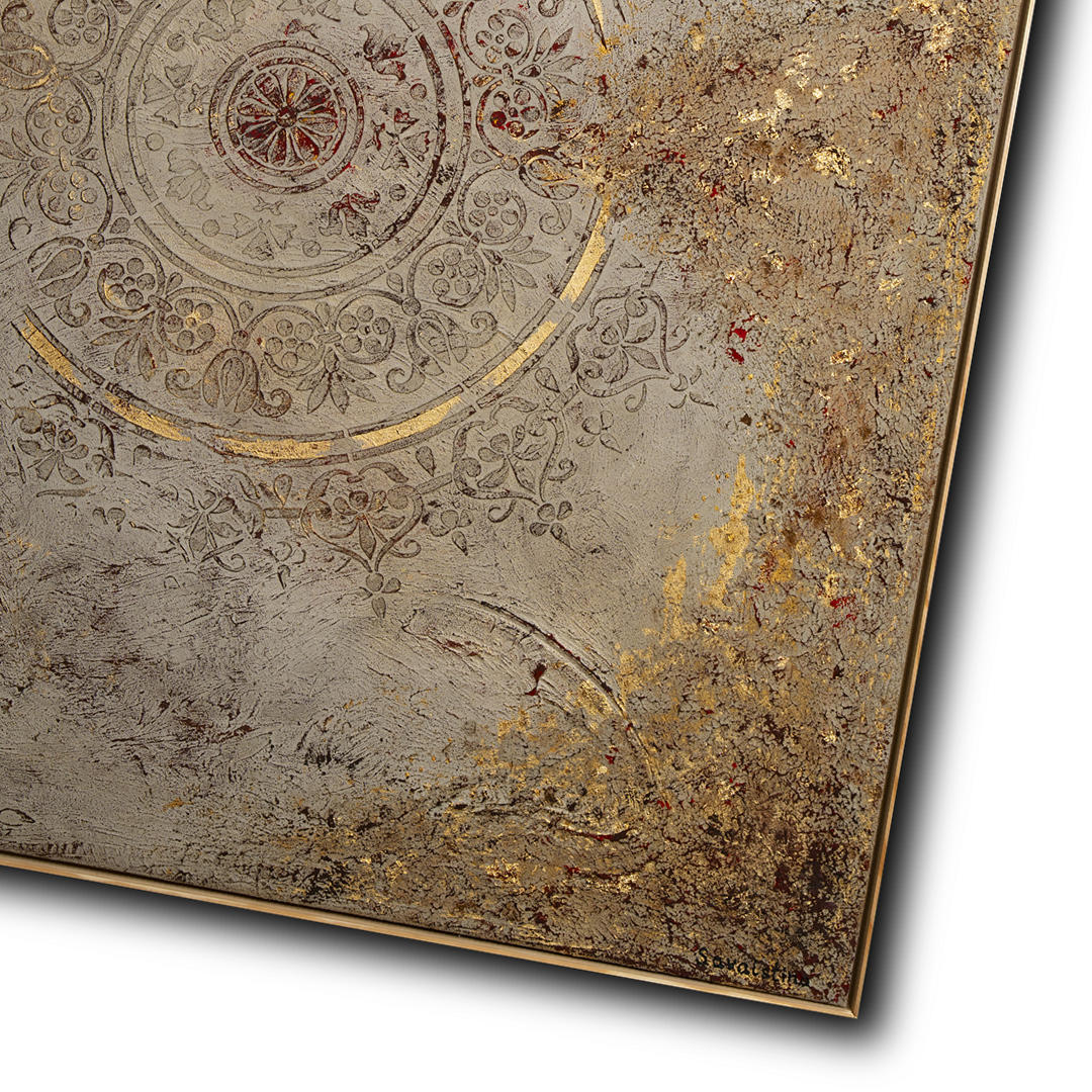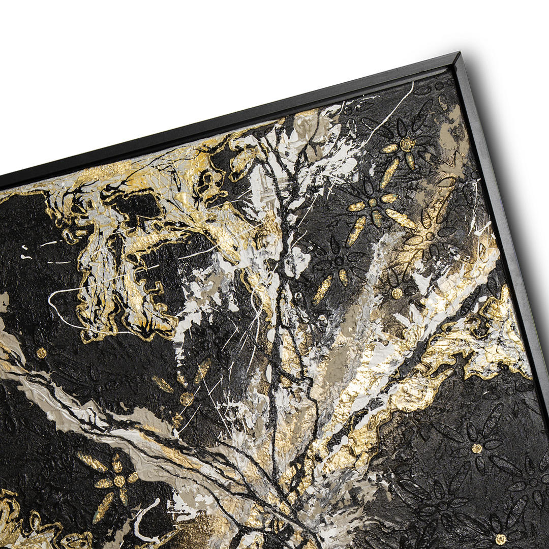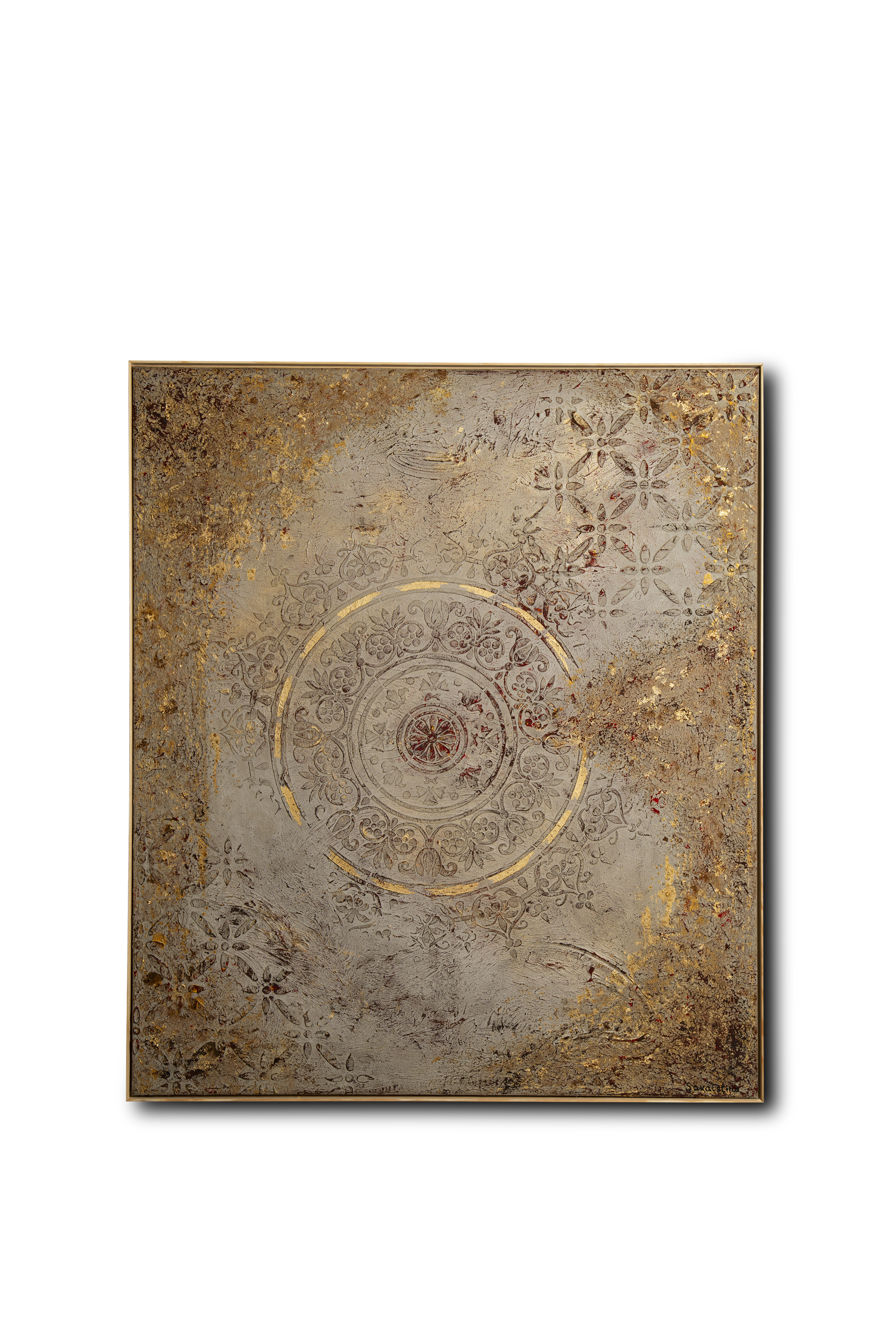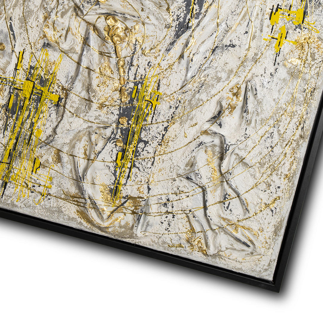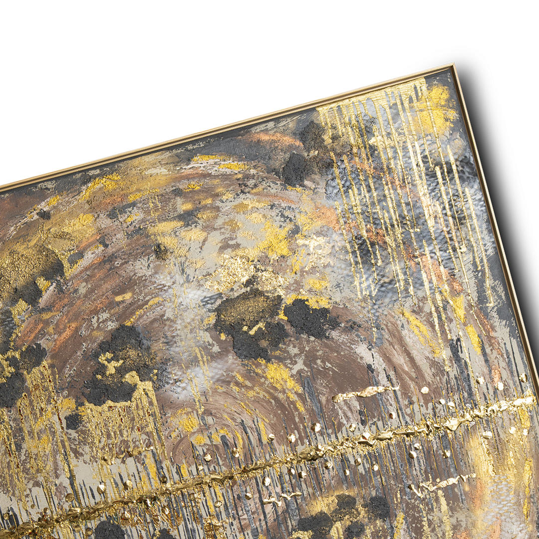acrylic on canvas using oils, epoxy resin, fabrics, concrete, and gilding