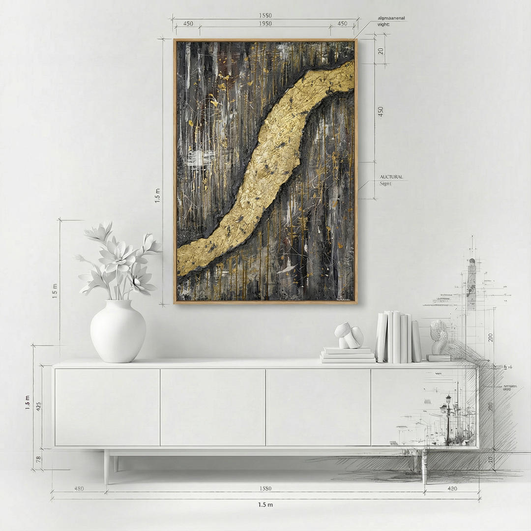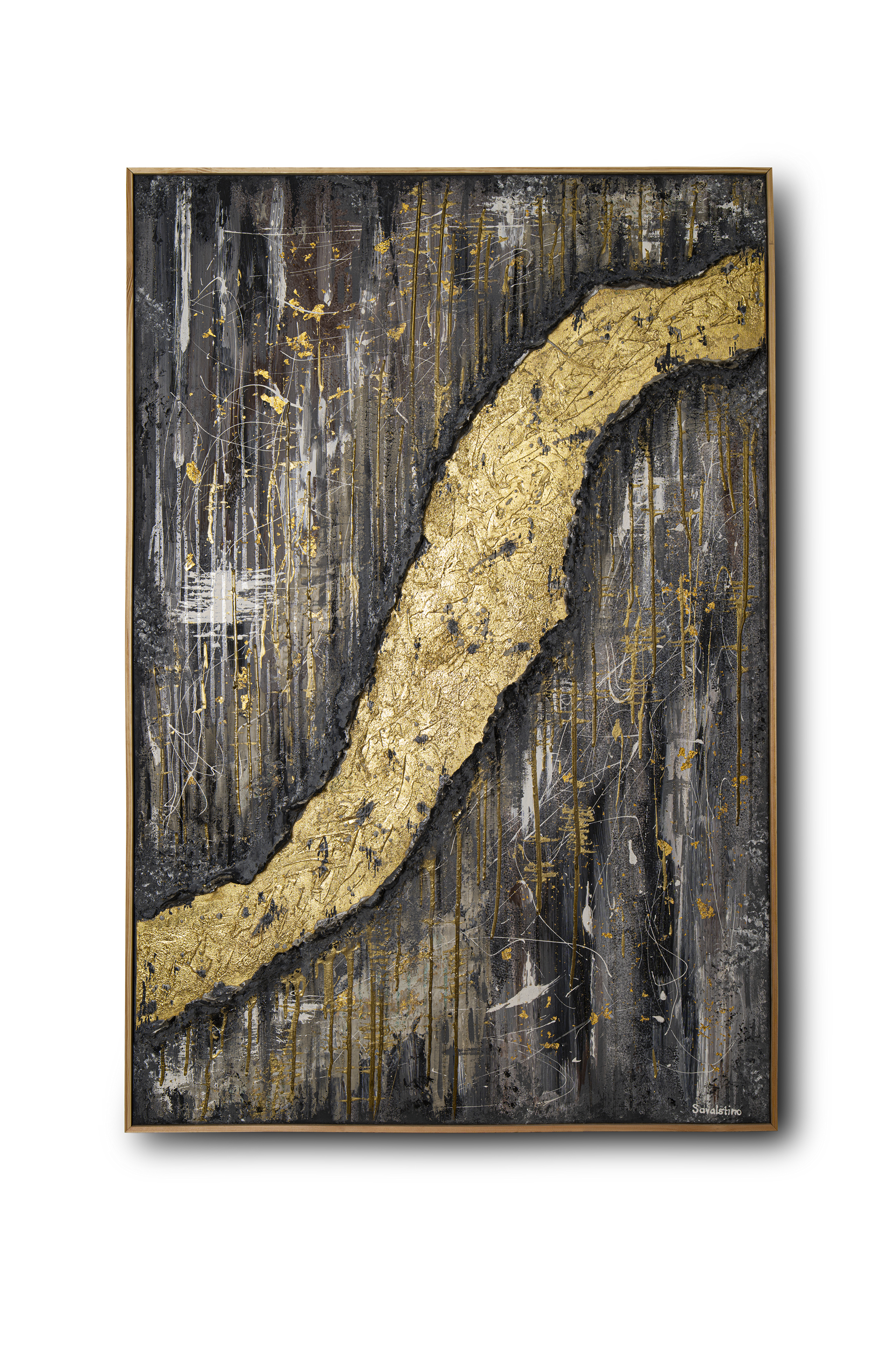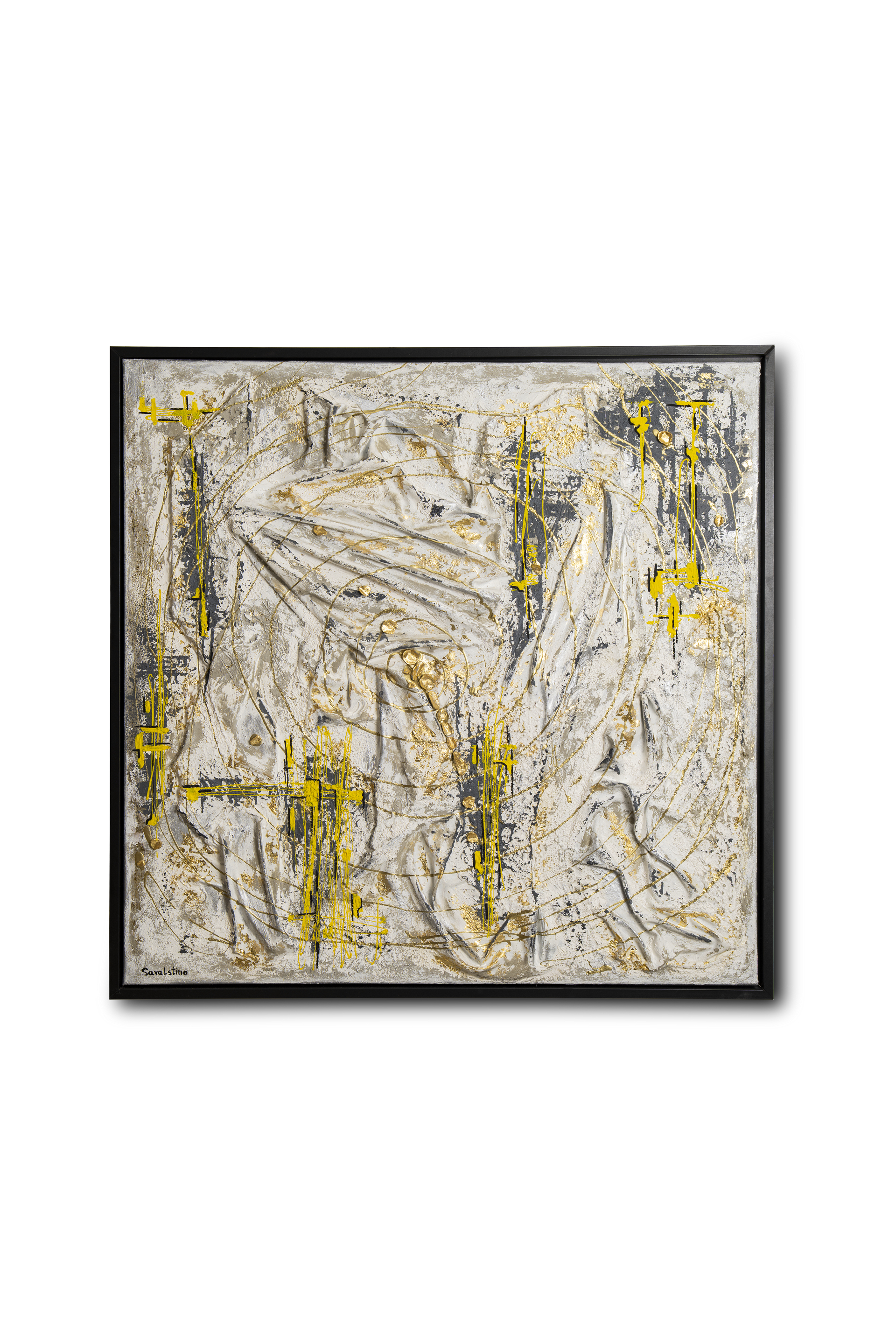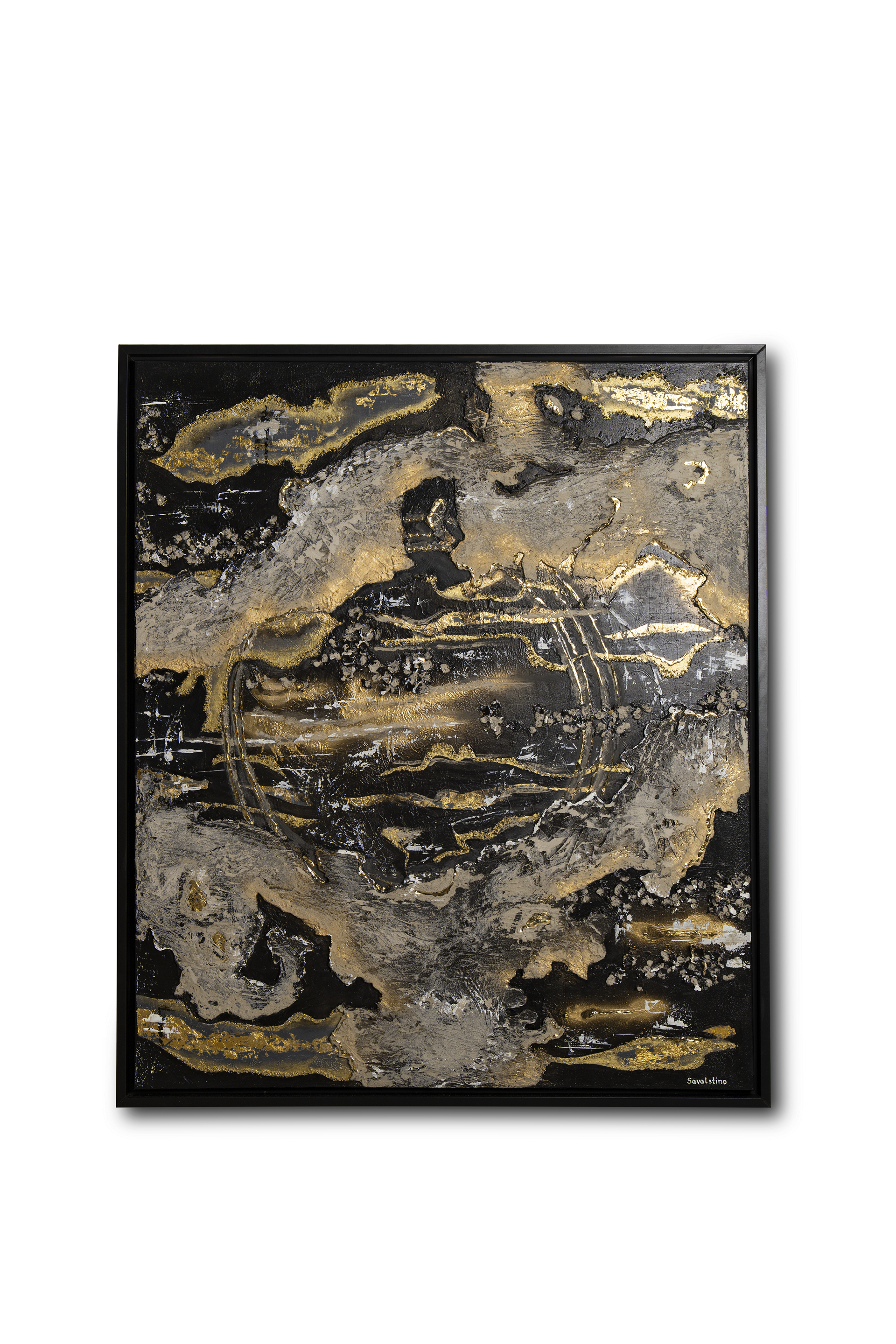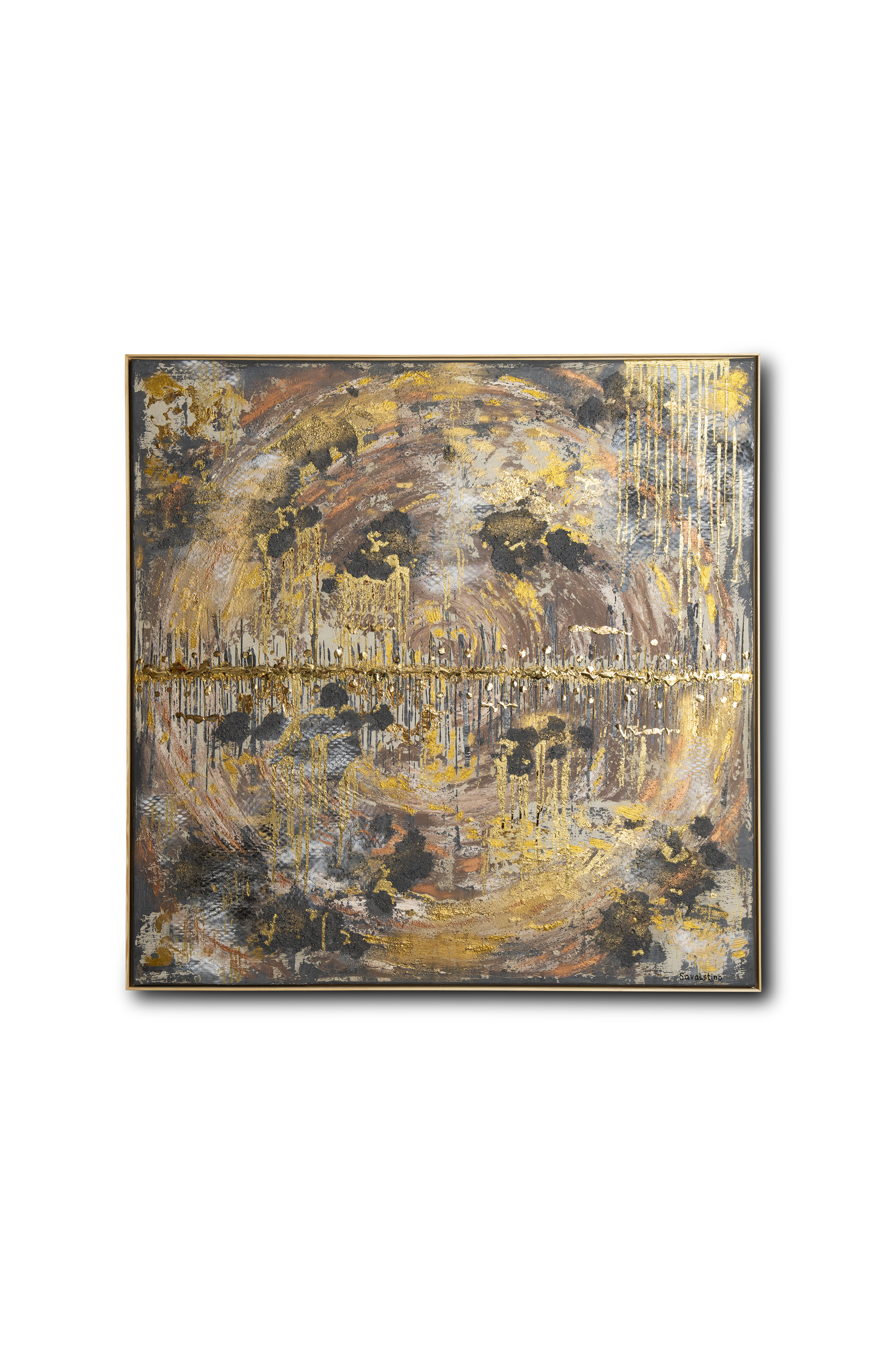acrylic on canvas using oils, epoxy resin, fabrics, concrete, and gilding